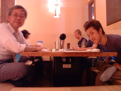 Yesterday I met my lab group under Professor Asano - Asano Lab. Hopefully it'll work out with them, they seem like a really cool bunch of folks! Asanosensei treated us to dinner at a local yakiniku, or grilled meat, place. You grill the meat over these little grils built into the tables. It was a lot of fun, and delicious! One of the guys had a really nice motorcycles, so Ben and Mike posed with it.