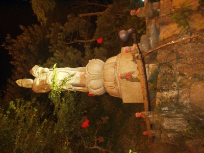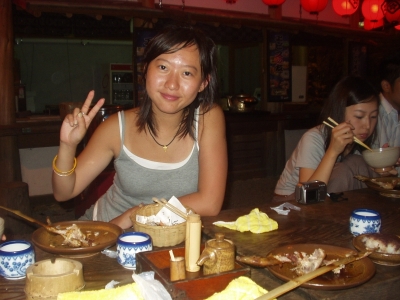 At night, we drove 1.5 hours away for dinner. We were in another province! Deep in the mountains, there are two resturants set across the road from each other. Each are a combination Shinto shrine and yakiniku resturant (meat grilling place). We went to the bigger one and settled down to some of the best chicken halves I have EVER had. The teriyaki sauce was absolutely delicious.