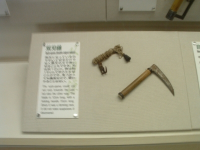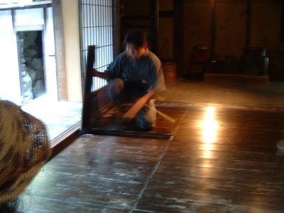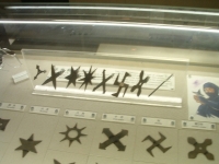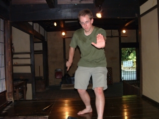 The Iga-Ueno Ninja museum was an interesting place. Out of the 4-5 people there dressed as ninja, I could see that maybe one of them had any talent/training. The house was a fun collection of various stage tricks and secret tunnels, which, if invented when they said they were, would be quite an accomplishment. The Japanese people on the tour and the tour guide himself was impressed when I neatly folded myself into a secret compartment. After showing us the short sword (a mix between a katana and ninja-to) under the sliding floor (which he removed with an impressive slide), he let me hold it and strike a pose for the camera. There were some new pieces of information I learned which fit my current interpretation of who the ninja were. The fact that the ninja became artillery specialists when the Tokugawa reorganized the Imperial Army bodes well for the theory that they were siege monkeys. There were also some wholy foolish things about ninja mind control and how they changed their diet to prevent smell (which, coincidentally, just happens to be the diet for every Buddhist monk). Considering the connections they had, it wouldn't surprise me that they ate that way because they liked to eat that type of food. Another fun "fact" - ninja always slept left side down, hand over their heart. Supposedly, the hand or their side would stop a sword from piercing their heart. Anyways, even with all the drama, the museum was fun. I just missed one of their ninjitsu presentations, something I'm kicking myself for. Oh well.