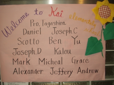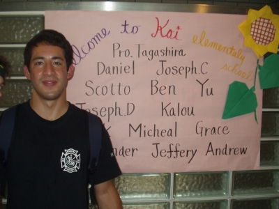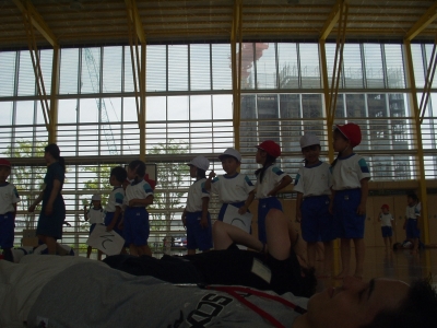 We went to two elementary schools this week - one public, one private. The private school was a beautiful new facility, complete with a pool, specially designed classrooms, and enormous amounts of technology. The kids there were a lot of fun - we had a great time with them, especially over lunch and recess. We also played a game in gym where we laid on the floor and tried to make kanji letters with our bodies.