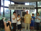 I also met my host family! This was a great surprise and a real joy. The mother and the child were both there. The father is a pilot for an airline. They are all Korean, yet speak perfect Japanese. They also live right across the street at another apartment building! I suppose I won't have to learn a new neighbourhood then.