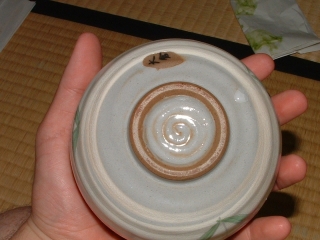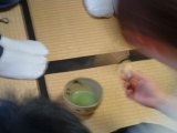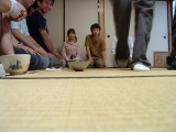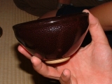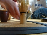 Then the tea is served - hot, freshly whisked with bamboo tools. You raise the bowl to your eyes and look at it, rotate it two 90 degree turns, drink the tea in several sips (all of it!), wipe the rim, rotate it two more 90 degree turns (same direction, counterclockwise), and set it back on the tatami. If you don't follow the protocol, it is considered very impolite.