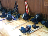 Today, we had Kendo! I was incredibly excited about this when I heard it was going down. After a short demo or two with live blades, and some basic kendo instruction, four of us had a chance to fit out in armor and we got to go at each other. I was one of those chosen, and I went up against Lulu, who I crushed soundly (sorry Lu). Anyways, I'm looking forward to doing even MORE kendo with these guys later. It was a blast!