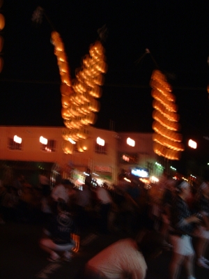 We met a girl there who looked remarkably like a friend of mine from home. Her name was Roberta, and she told us if we really wanted to see the good show, we should go to the bar/seedy part of town after the parade, and see the offstage performances. We weren't disappointed. Without the powerlines and other overhead obstructions, the heights got higher and the performers more bold, pulling of multiple lay down moves in big groups.