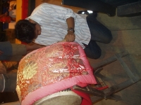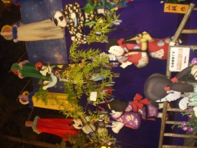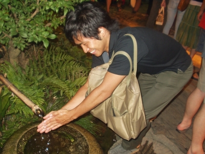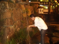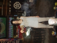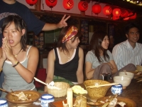 At night, we drove 1.5 hours away for dinner. We were in another province! Deep in the mountains, there are two resturants set across the road from each other. Each are a combination Shinto shrine and yakiniku resturant (meat grilling place). We went to the bigger one and settled down to some of the best chicken halves I have EVER had. The teriyaki sauce was absolutely delicious.