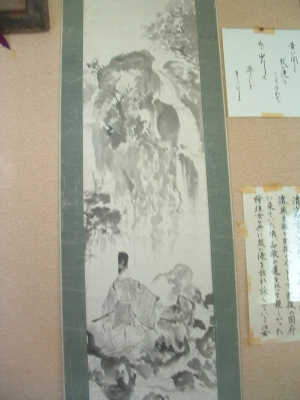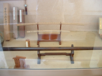 Finally, we arrived at Reigan-Do. For such an important site, it had very little fanfare about it. The little old lady at the front desk collected the 400 yen enterance fee (about $4) and we walked through an old and rusty electronic gate system. There is an extremely small exhibit of Musashi's personal effects just inside. This small group contains some of the most famous artifacts - several sumi-e paintings, his bokken used in most bouts after his with Saigo Takimori, and the bokken cut from an oar that he used against Saigo Takimori himself. Amazing stuff. The oar bokken is absolutely enormous, dwarfing a normal sword in both length and girth. Just past this small museum is a practicing Buddhist temple along with a Shinto shrine.