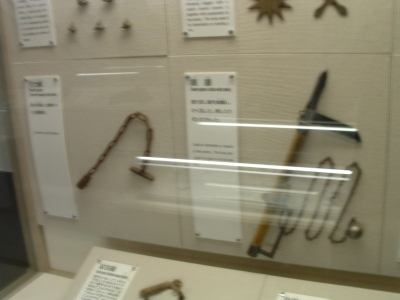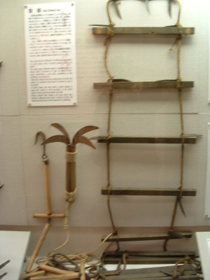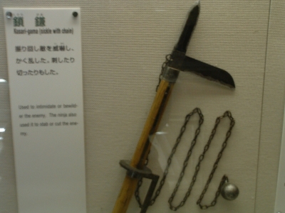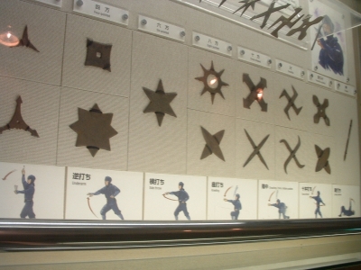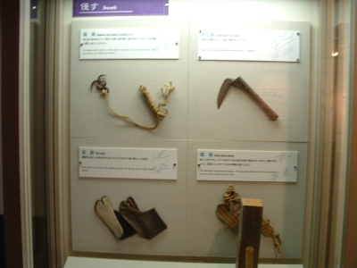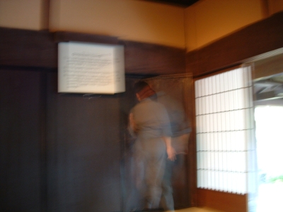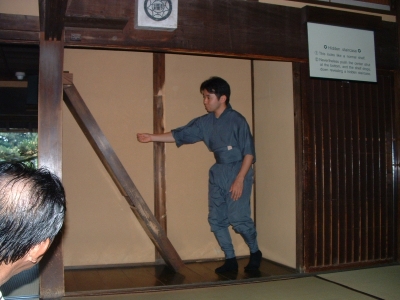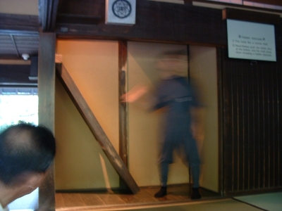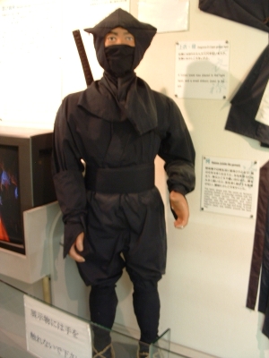 The Iga-Ueno Ninja museum was an interesting place. Out of the 4-5 people there dressed as ninja, I could see that maybe one of them had any talent/training. The house was a fun collection of various stage tricks and secret tunnels, which, if invented when they said they were, would be quite an accomplishment. The Japanese people on the tour and the tour guide himself was impressed when I neatly folded myself into a secret compartment. After showing us the short sword (a mix between a katana and ninja-to) under the sliding floor (which he removed with an impressive slide), he let me hold it and strike a pose for the camera. There were some new pieces of information I learned which fit my current interpretation of who the ninja were. The fact that the ninja became artillery specialists when the Tokugawa reorganized the Imperial Army bodes well for the theory that they were siege monkeys. There were also some wholy foolish things about ninja mind control and how they changed their diet to prevent smell (which, coincidentally, just happens to be the diet for every Buddhist monk). Considering the connections they had, it wouldn't surprise me that they ate that way because they liked to eat that type of food. Another fun "fact" - ninja always slept left side down, hand over their heart. Supposedly, the hand or their side would stop a sword from piercing their heart. Anyways, even with all the drama, the museum was fun. I just missed one of their ninjitsu presentations, something I'm kicking myself for. Oh well.
