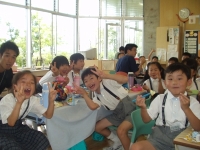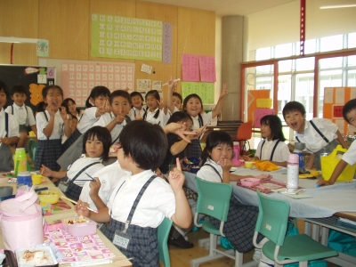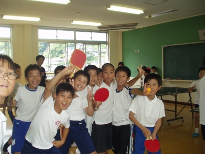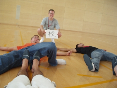 We went to two elementary schools this week - one public, one private. The private school was a beautiful new facility, complete with a pool, specially designed classrooms, and enormous amounts of technology. The kids there were a lot of fun - we had a great time with them, especially over lunch and recess. We also played a game in gym where we laid on the floor and tried to make kanji letters with our bodies.